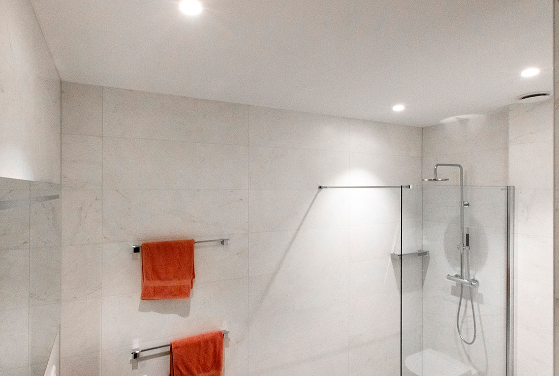 Een spanplafond in de badkamer biedt niet alleen een esthetisch verantwoorde oplossing, maar is ook zeer praktisch. Het is bestand tegen vocht en schimmel, waardoor het ideaal is voor ruimtes met hoge luchtvochtigheid. Het zorgt voor een strak, naadloos plafond dat eenvoudig te onderhouden is. Bovendien kunnen diverse afwerkingen, zoals glanzend of mat, de ruimte visueel verlichten en vergroten, waardoor uw badkamer een frisse uitstraling krijgt.