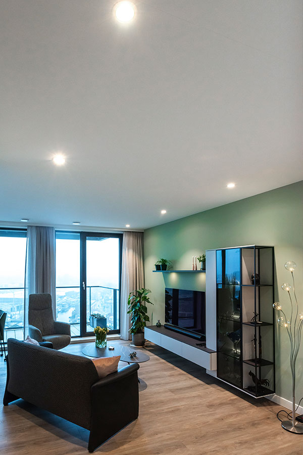 Een spanplafond in de woonkamer biedt een strakke, moderne uitstraling die perfect past bij elk interieur. Het verbergt oneffenheden en zorgt voor een naadloze afwerking, zonder dat er gesloopt of geverfd hoeft te worden. Met diverse afwerkingen en kleuren kunt u het plafond volledig afstemmen op de stijl van uw woonkamer. Bovendien kan een spanplafond de akoestiek verbeteren en uw ruimte visueel verruimen.