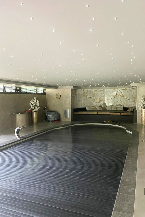 Een spanplafond in zwembaden zorgt voor een moderne en hygiënische uitstraling. Het biedt een strakke, uniforme afwerking die de ruimte schoon en opgeruimd doet aanvoelen. Het verbergt onregelmatigheden en zorgt voor een frisse look. Bovendien is het onderhoudsarm en kan het de akoestiek verbeteren, wat bijdraagt aan een rustgevende sfeer. Keuze uit diverse afwerkingen maakt het mogelijk om het plafond perfect aan de inrichting van het zwembad aan te passen.